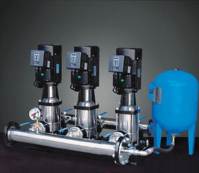 一体化成套供水设备,由最新性能PID变频控制器、泵组、管路附件及压力罐组成。 每台泵以并联方式接入系统。